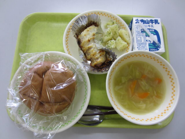 ホーム > 2021年度 / 学校活動の様子 ちゃちゃもランチ 今日は、ちゃちゃもランチの日でのす。メニューは、 松阪産緑茶の粉末が入った丸パン、さわらのマヨネーズやき、あおのりポテト、エンドウ豆と新玉のスープです。今日も、給食に関っていただいた方に感謝しながら、「いただきます!」 シェアする Twitter でシェア はてなブックマークに保存 LINE でシェア Facebook でシェア Pocket に保存 Feedly で購読 関連投稿 学校活動の様子 給食の様子(ちゃちゃもランチ) 2023年度 / 学校活動の様子 よむYOMUワークシート(読解力向上プロジェクト事業) 2022年度 / 学校活動の様子 1年音楽 2年国語 3年技術 学校活動の様子 中体連地区大会(テニス女子) 学校活動の様子 1年理科 2年修学旅行説明会 学校活動の様子 あしやまタイム 前の投稿 スポフェス練習 次の投稿 水曜日5限目の授業