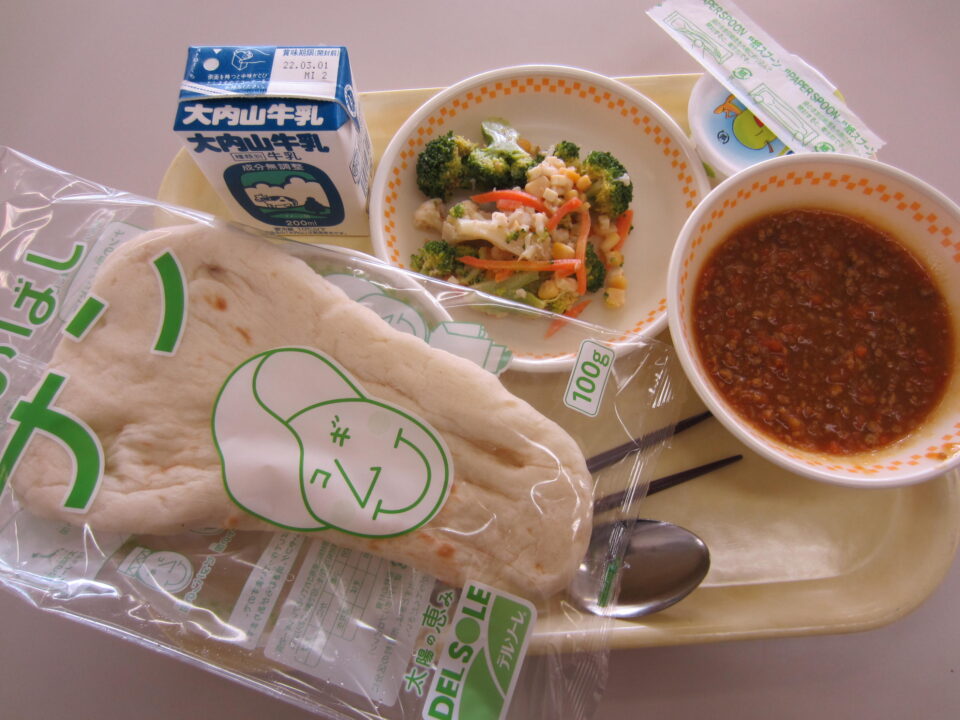 ホーム > 2021年度 / 学校活動の様子 今日の給食 今日の給食は、「ナン」「キーマカレー」「はな野菜サラダ」「青りんごゼリー」「牛乳」です。 ナンに、キーマカレーを付けていただきます。 お昼の放送は、給食委員さんがしてくれます。 メニューの紹介と、今日は、3年生の給食の思い出エピソードを放送してくれました。 シェアする Twitter でシェア はてなブックマークに保存 LINE でシェア Facebook でシェア Pocket に保存 Feedly で購読 関連投稿 学校活動の様子 あしやまタイム 学校活動の様子 校区6年生 学校見学会 コミュニティ・スクール / 2023年度 / 学校活動の様子 1年生「仲間づくり」 学校活動の様子 4月17日(木)の給食 学校活動の様子 あしやまタイム講演会 2021年度 / 学校活動の様子 分散授業 前の投稿 2年数学 次の投稿 2年生 心のストレッチ