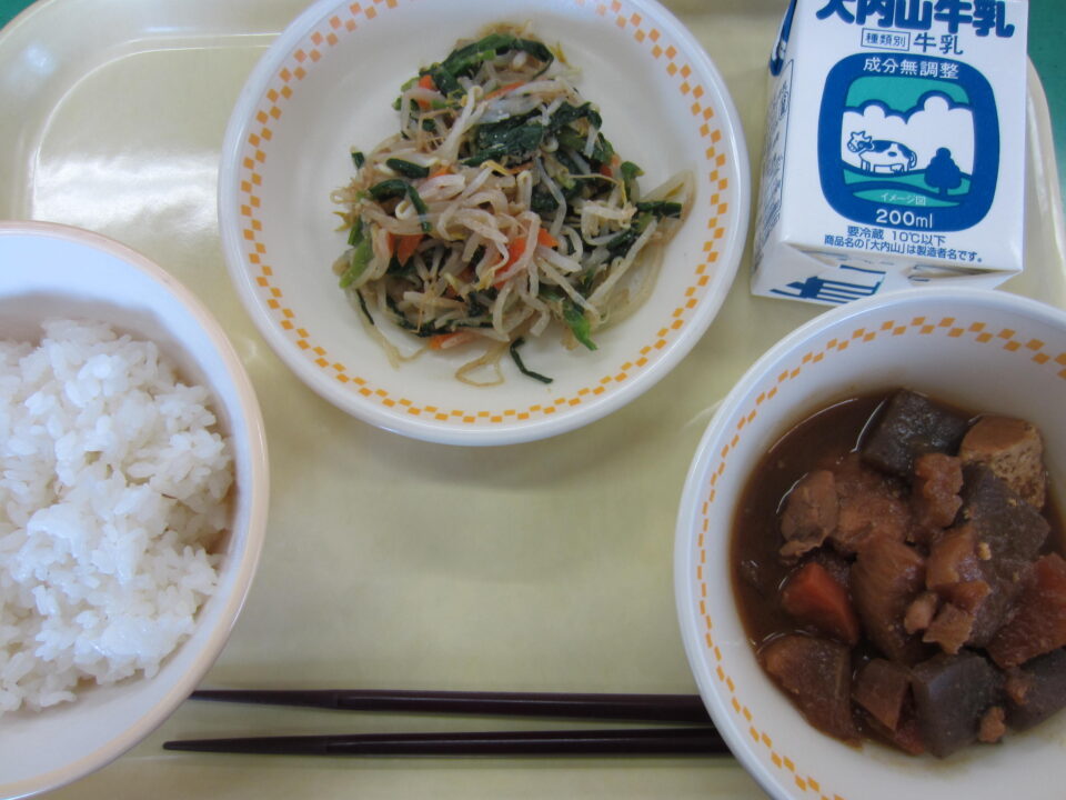 ホーム > 2021年度 / 学校活動の様子 全国学校給食週間最終日 全国学校給食週間の最終日です。 今日の献立は、飯高産の「こんにゃく」「とっとき味噌」と松阪産の「厚揚げ」を使った味噌おでん、 もやしとにらの胡麻和え、麦入りご飯、牛乳です。 今日も手際よく配膳します。 シェアする Twitter でシェア はてなブックマークに保存 LINE でシェア Facebook でシェア Pocket に保存 Feedly で購読 関連投稿 学校活動の様子 松阪地区中学校総合体育大会(男子ソフトテニス) 学校活動の様子 生徒会と地域おこし協力隊 学校活動の様子 文化祭① 学校活動の様子 よむYOMUワークシート(読解力向上プロジェクト事業) 学校活動の様子 4月行事予定 学校活動の様子 今年度、最後の給食 前の投稿 2年みえスタディチェック 1年数学 次の投稿 図書室開館