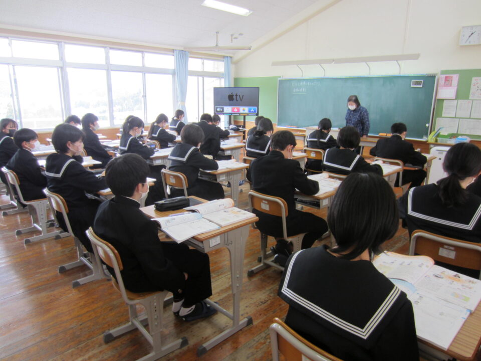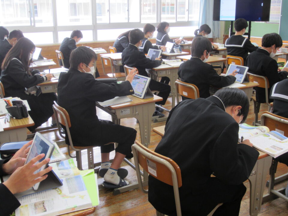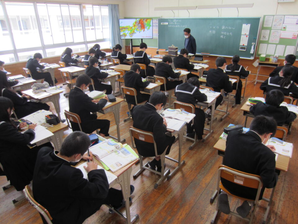 ホーム > 2022年度 / 学校活動の様子 教科の授業が始まりました 今日から、教科の授業が始まりました。 最初の授業ですが、オリエンンテーションの教科や、 さっそくタブレットを利用する学習もあり、熱心に話を聞いて、 取り組む様子がありました。 1年生の家庭科 食事の役割についての学習でした。 3年生の社会 日本の国土の地形的な特色を学習中でした。タブレットも活躍。 2年生の体育 体力テストについての説明を受けている最中でした。 シェアする Twitter でシェア はてなブックマークに保存 LINE でシェア Facebook でシェア Pocket に保存 Feedly で購読 関連投稿 学校活動の様子 創作部 交通安全のぼり旗完成 学校活動の様子 女子バレーボール部 準優勝! 2022年度 / 学校活動の様子 1年音楽 2年英語 3年数学 2024年度 / 学校活動の様子 修学旅行 1日目 学校活動の様子 生徒会専門委員会 学校活動の様子 金曜日の朝は「よむYOMUワークシート」(読解力向上プロジェクト事業) 前の投稿 生徒会専門委員会 次の投稿 1年クラブ見学