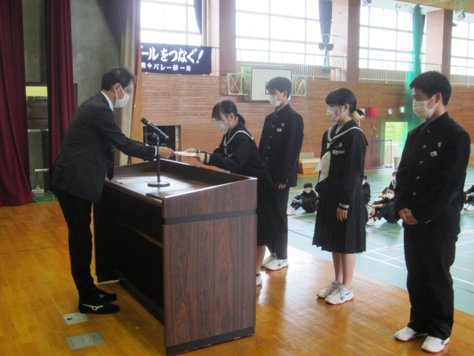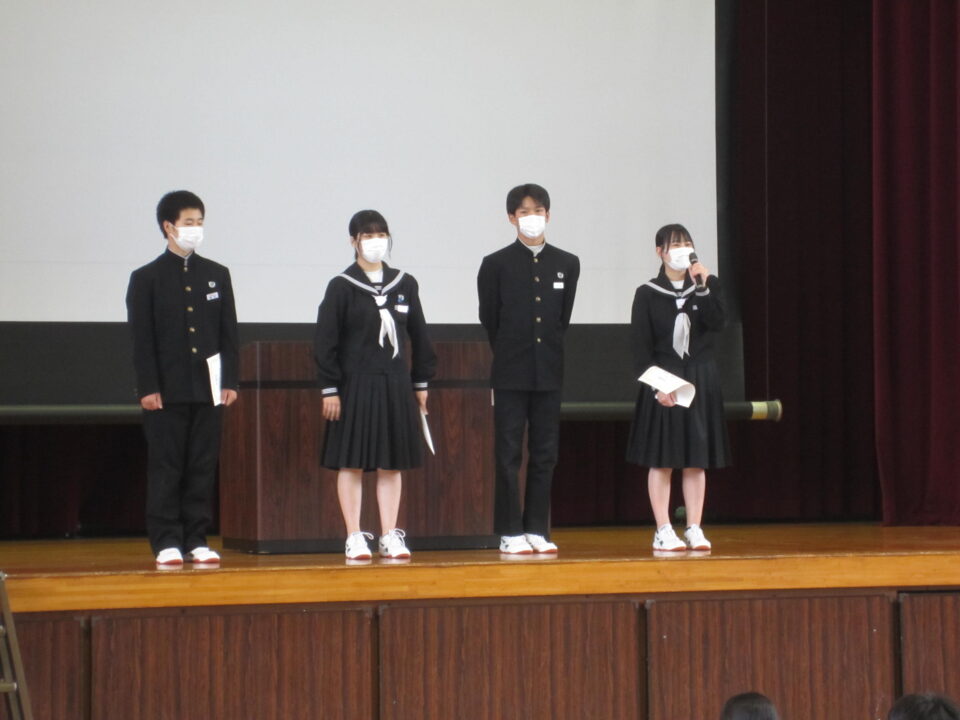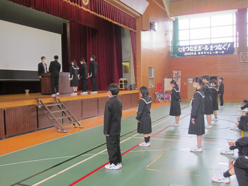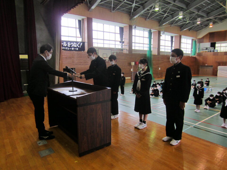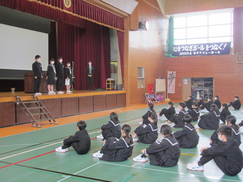 ホーム > 2022年度 / 学校活動の様子 生徒会任命式 5限目に、生徒会任命式がありました。 先日の専門委員会で、委員長・副委員長を決め、前期生徒会の活動が 動き出しました。 ↓生徒会役員の任命 ↓学級役員の任命 ↓専門委員長の任命 校長先生からは、リーダーとフォロアーのお話がありました。 生徒全員で、素晴らしい飯南中学校にしていきましょう。 シェアする Twitter でシェア はてなブックマークに保存 LINE でシェア Facebook でシェア Pocket に保存 Feedly で購読 関連投稿 2025年度 / 学校活動の様子 2年生修学旅行 震災学習 学校活動の様子 あしやまタイム 野菜(ベジタブル)班 学校活動の様子 後期生徒会役員立会演説会 2023年度 / 学校活動の様子 1年生社会見学① 学校活動の様子 金曜日の朝は「よむYOMUワークシート」(読解力向上プロジェクト事業) 2021年度 / 学校活動の様子 生徒会の活動 文化祭オープニングに向けて 前の投稿 3年体育〜体力テスト実施中 次の投稿 3年生クラス目標