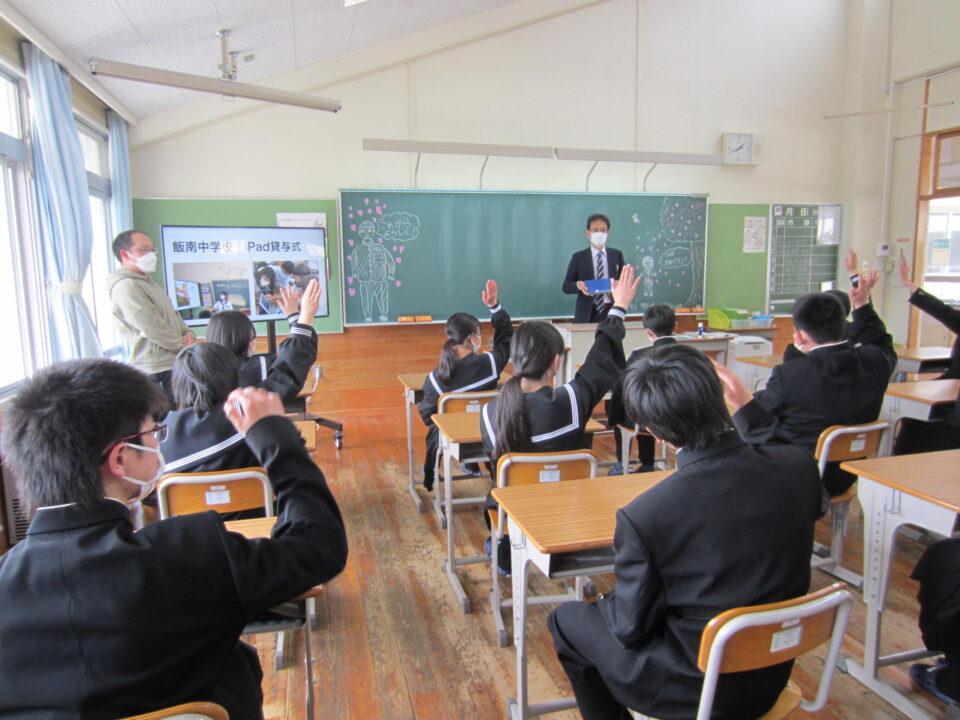 ホーム > 2022年度 / 学校活動の様子 1年 タブレット貸与式 タブレットの貸与式を行いました。 小学校で使用していた同じ型のタブレットを使用します。 校長先生からのお話の後、生徒代表に貸与をしました。 授業でたくさん活用します。大事に使ってください。 その後、養護教諭から、保健室の利用の仕方などの お話をしてもらいました。 シェアする Twitter でシェア はてなブックマークに保存 LINE でシェア Facebook でシェア Pocket に保存 Feedly で購読 関連投稿 学校活動の様子 3年生 実力テスト 学校活動の様子 部活動の様子 2021年度 / 学校活動の様子 2年生社会見学① 学校活動の様子 1年生 調理実習 学校活動の様子 1年生仲間づくり授業 学校活動の様子 中体連ソフトテニス大会(個人の部) 前の投稿 3年 5限目のクラス活動 次の投稿 3年生 クラスの活動