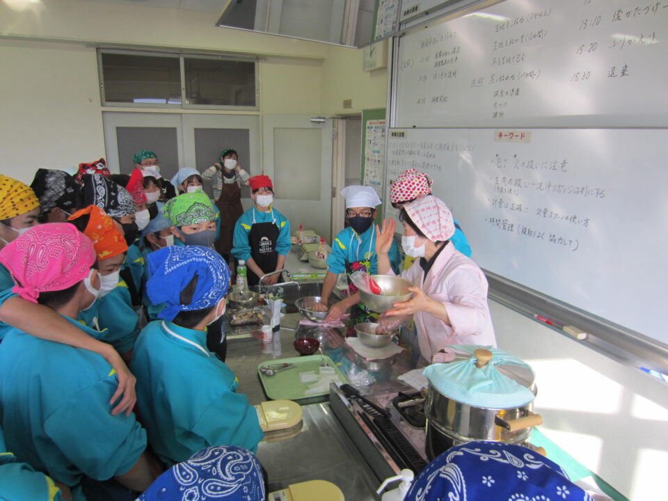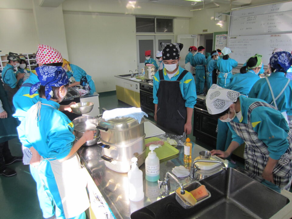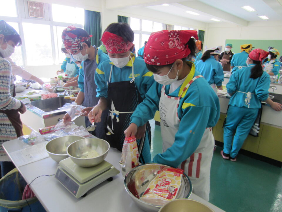 ホーム > 2021年度 / 学校活動の様子 1年「飯南茶まん」を作ろう 今日は、1年生が「飯南茶まん」づくりにチャレンジです。 ①地元の食材のお茶や椎茸を使って調理実習することで、地場産物への興味関心を高める。 ②衛生面に気を付けて、安全に調理ができる。 ③「飯南茶まん」が作れるようになる。が、学習のねらいです。 おいしい「飯南茶まん」が作れるでしょうか。 栄養教諭の森先生から、作り方のレクチャーを受けます。 レクチャーのあとは、班別に分かれて調理開始。 シェアする Twitter でシェア はてなブックマークに保存 LINE でシェア Facebook でシェア Pocket に保存 Feedly で購読 関連投稿 学校活動の様子 部活動の様子 学校活動の様子 創作部 2021年度 / 学校活動の様子 あしやまタイム 2023年度 / 学校活動の様子 授業参観 2022年度 / 学校活動の様子 1年英語 2年国語 3年数学 2021年度 / 学校活動の様子 今日の給食 前の投稿 1年体育 次の投稿 1年「飯南茶まん」②