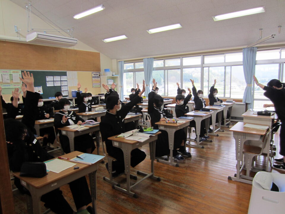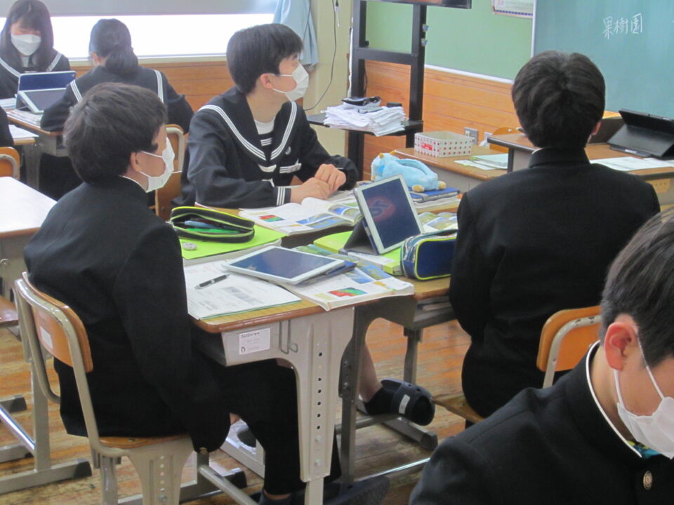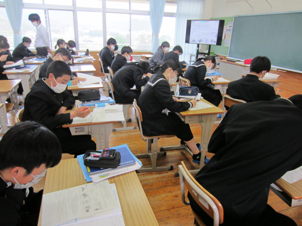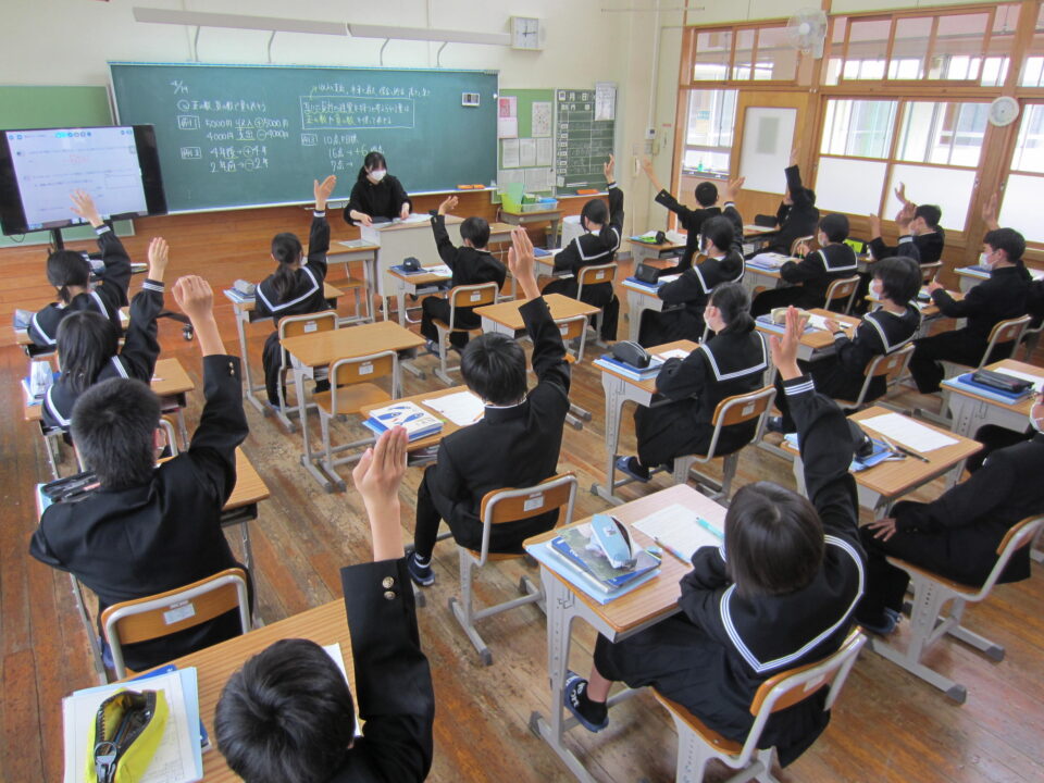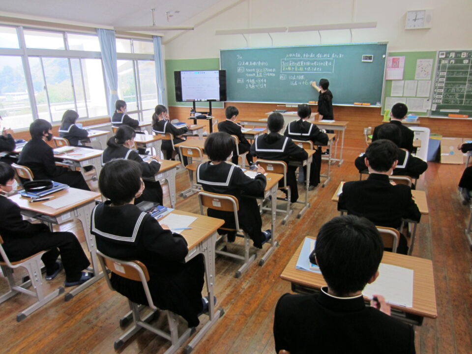 ホーム > 2022年度 / 学校活動の様子 1年数学 2年社会 3年英語 1年生数学 最初の単元は「正の数・負の数」です。中学校の数学の基本単元になります。使い方、計算の仕方をしっかり学びましょう。 3年生の英語です。 受動態の使い方の学習でした。理解できましたか。 2年の社会です。 川が作る地形と、海岸や海洋と特色の学習です。 タブレットを利用してのグループ学習でした。 シェアする Twitter でシェア はてなブックマークに保存 LINE でシェア Facebook でシェア Pocket に保存 Feedly で購読 関連投稿 学校活動の様子 分散授業(最終日) 学校活動の様子 いいタイム ~いいなん・いい関係・いい雰囲気・いい時間~ 学校活動の様子 和食の日 学校活動の様子 よむYOMUワークシート(読解力向上プロジェクト事業) 学校活動の様子 3年生 後期中間テスト 学校活動の様子 授業のようす 前の投稿 1年英語 2年体育 3年数学 次の投稿 3年体育〜体力テスト実施中