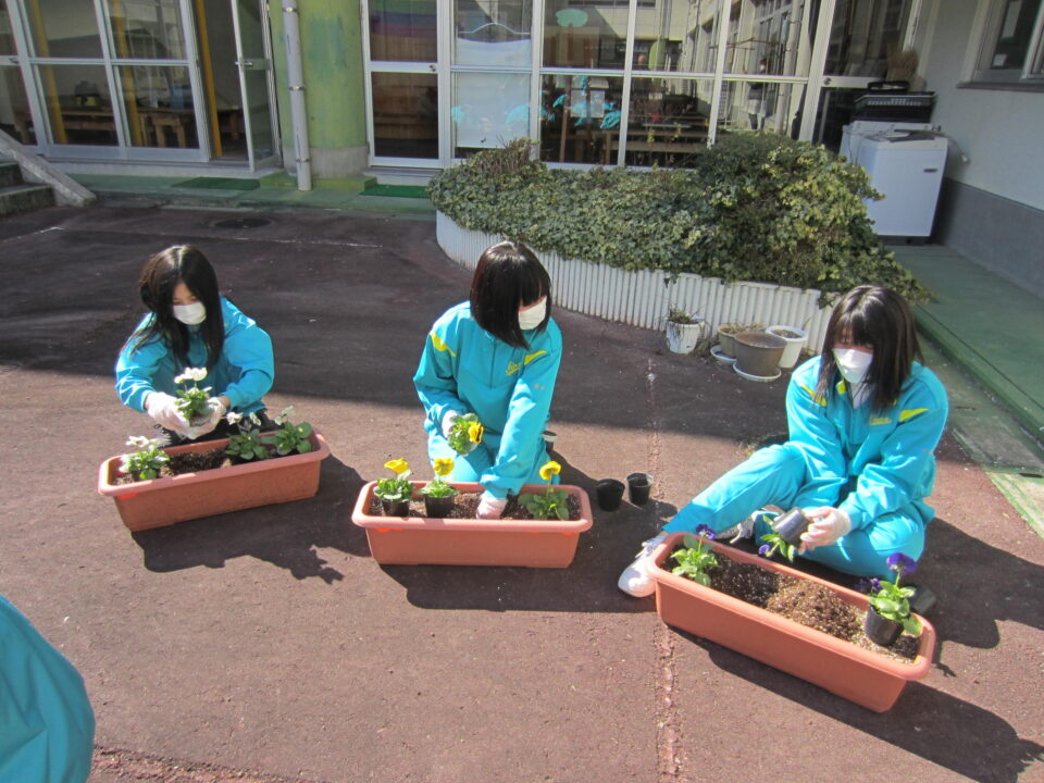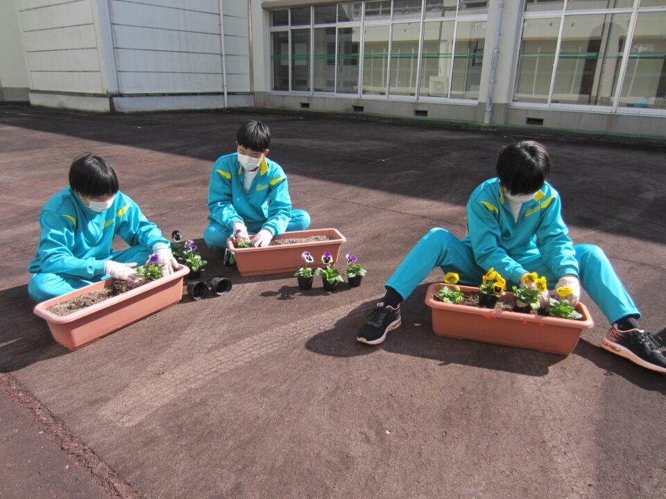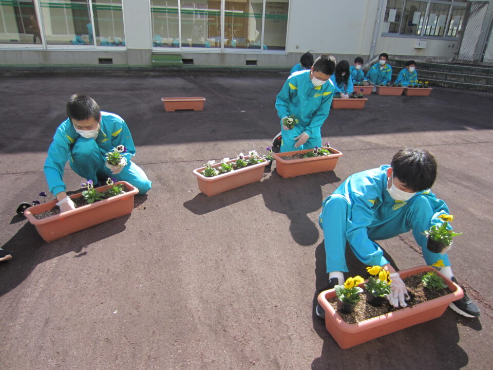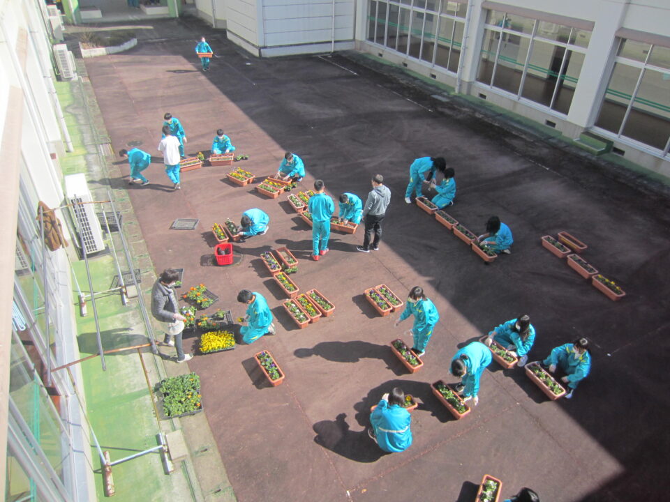 ホーム > 学校活動の様子 1年生 パンジーの植え付け 3年生が奉仕作業をしている時間、1年生はパンジーの植え付け作業をしてくれました。 先日いただいたパンジーと追加で購入した分を、校務員さん指導の下、プランターに植え付けをしました。 7日の卒業式と、4月6日の入学式の花道に置く予定です。 こんなにたくさんプランターが並びました。 シェアする Twitter でシェア はてなブックマークに保存 LINE でシェア Facebook でシェア Pocket に保存 Feedly で購読 関連投稿 2021年度 / 学校活動の様子 着任式・始業式・入学式 2022年度 / 学校活動の様子 1年家庭 2年社会 3年理科 学校活動の様子 女子ソフトテニス部 2022年度 / 学校活動の様子 掃除の時間です 学校活動の様子 中体連ソフトテニス壮行会 学校活動の様子 第3回 朝のあいさつ 清掃活動 前の投稿 3年生 奉仕作業 次の投稿 1年社会 3年理科