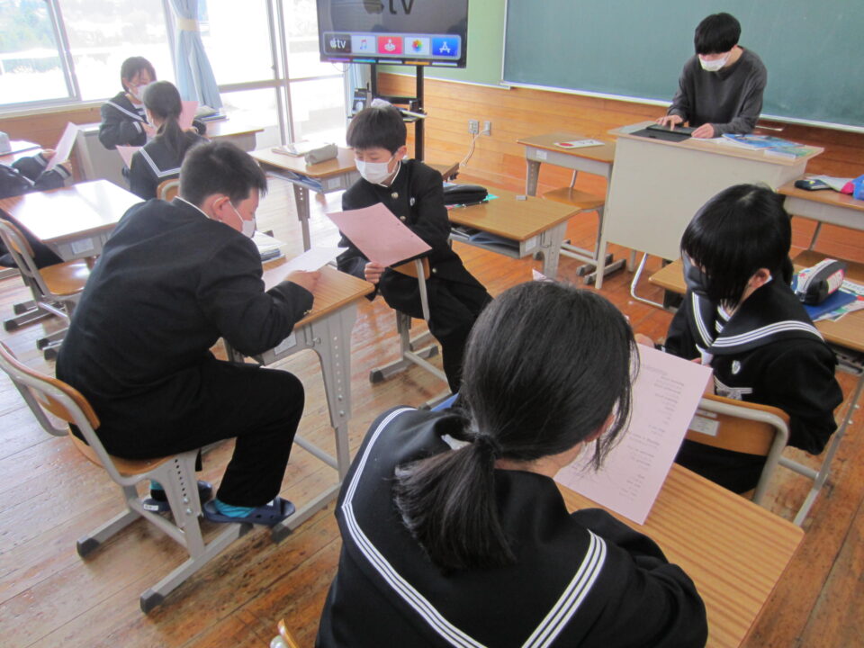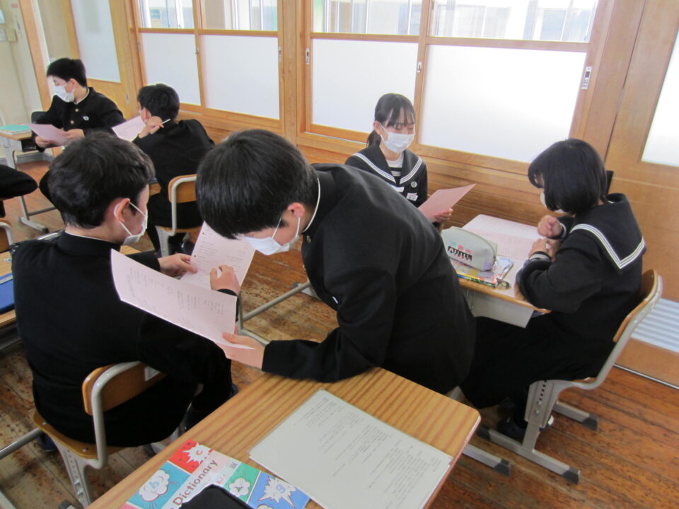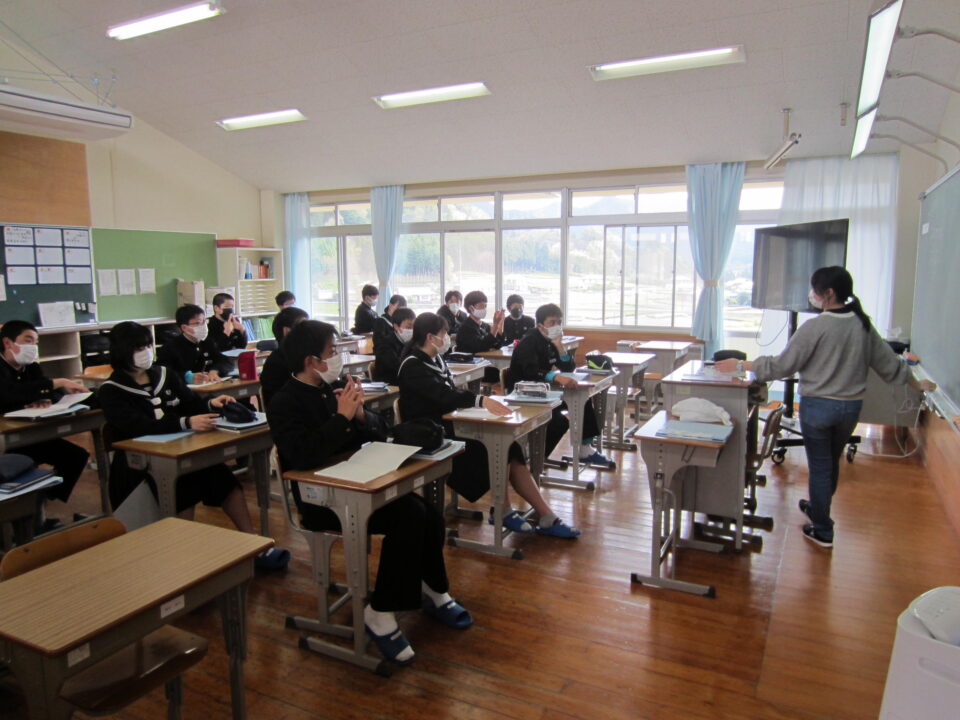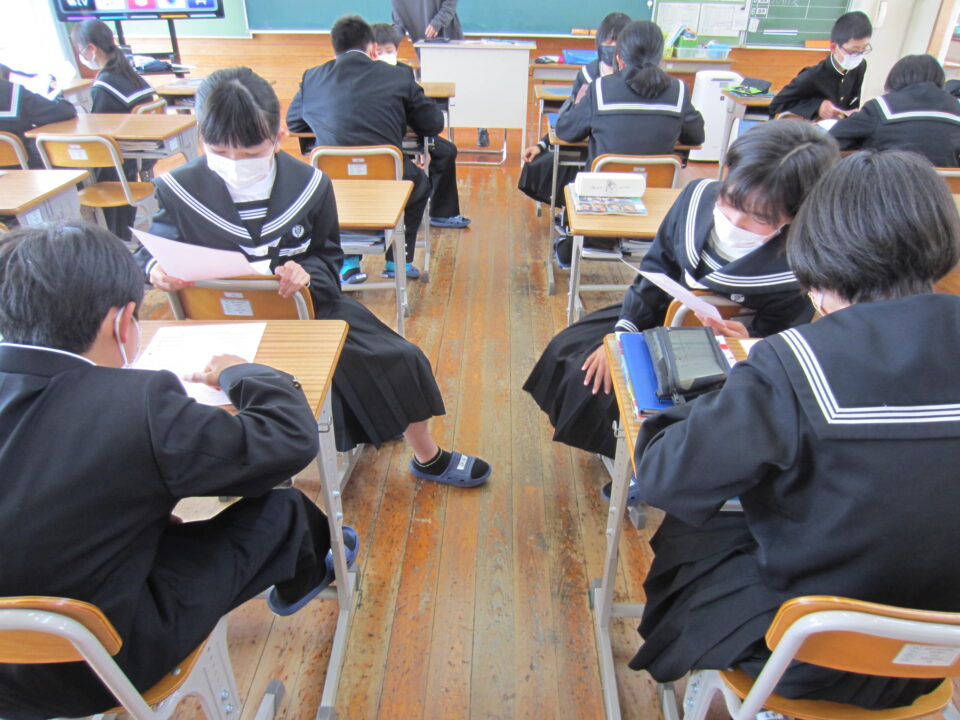 ホーム > 学校活動の様子 1年英語 2年体育 3年数学 1年生英語 あいさつのし方を、グループで確認をしました。 3年数学 トランプのカードを使った、数字当てが学習の始まりでした。 引いたカードの数字を当てます。 2年体育 体力検査です。50m走のタイムを計りました。 シェアする Twitter でシェア はてなブックマークに保存 LINE でシェア Facebook でシェア Pocket に保存 Feedly で購読 関連投稿 学校活動の様子 いいタイム ~いいなん・いい関係・いい雰囲気・いい時間~ 学校活動の様子 1年生仲間づくり授業 学校活動の様子 3年理科 特別の教育課程「人間と社会」 / 学校活動の様子 キャリア教育講演会 学校活動の様子 第3回 朝のあいさつ 清掃活動 学校活動の様子 1年生図書館オリエンテーション 前の投稿 今日の給食 次の投稿 1年数学 2年社会 3年英語