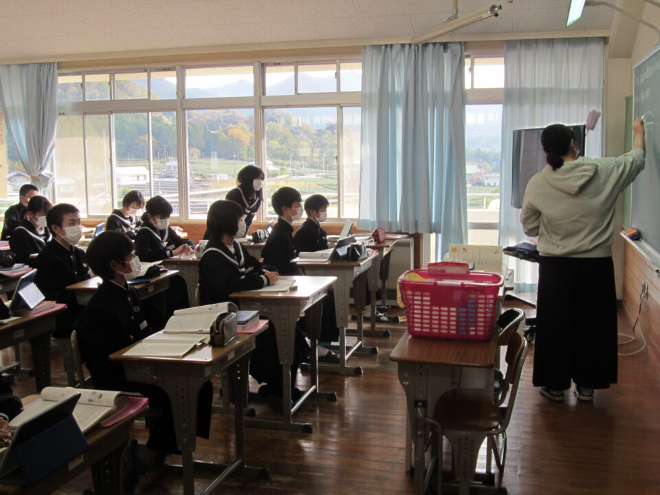 ホーム > 2021年度 / 学校活動の様子 1年数学、2年生英語 1年生の数学です。比例の学習です。比例のとき、xとyの2つの数量関係を式で表すとどうなるかの勉強です。 2年生は英語です。10年後の自分に向けて、英語でメッセージを書くのが今日の課題でした。 なかなか難しそうでした。 今日は、飯南高校の先生の来校日でした。 シェアする Twitter でシェア はてなブックマークに保存 LINE でシェア Facebook でシェア Pocket に保存 Feedly で購読 関連投稿 2021年度 / 学校活動の様子 文化祭に向けて 学校活動の様子 大掃除頑張りました 2024年度 / 学校活動の様子 3年生 スリンプルプログラム先行実施校による発表会 学校活動の様子 東海大会(女子バレーボール部) 学校活動の様子 4月17日(木)の給食 学校活動の様子 あいさつ運動 前の投稿 生徒会の活動 文化祭オープニングに向けて 次の投稿 文化祭に向けて