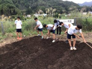 ホーム > 学校活動の様子 生徒会 能登被災地支援 野菜づくり 10月10日(金)放課後、後期生徒会のメンバーが冬の野菜づくりに向けて、土壌づくりに取り組みました。固くなった土を丁寧に耕し野菜が元気に育つ準備を整えました。 シェアする Twitter でシェア はてなブックマークに保存 LINE でシェア Facebook でシェア Pocket に保存 Feedly で購読 関連投稿 学校活動の様子 授業の様子 2025年度 / 学校活動の様子 2年生 社会 学校活動の様子 第37回全国都道府県対抗中学バレーボール大会三重県選抜チーム壮行会開催 学校活動の様子 2年みえスタディチェック 2024年度 / 学校活動の様子 修学旅行に向けて 6限目 事前学習発表会 2022年度 / 学校活動の様子 3年生〜最後の文化祭にむけて② 前の投稿 2年生家庭科 和装体験