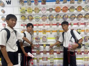 ホーム > 学校活動の様子 修学旅行3日目 カップヌードルミュージアム 生徒たちは、思い思いにイラストを描き、それぞれがオリジナルカップヌードルを作成しました! カップヌードルミュージアムを後にした一行は、大阪城を目指します。 シェアする Twitter でシェア はてなブックマークに保存 LINE でシェア Facebook でシェア Pocket に保存 Feedly で購読 関連投稿 2022年度 / 学校活動の様子 1年体育 2年国語 3年社会 学校活動の様子 第5回飯南中学校区学校運営協議会 開催 学校活動の様子 2年技術 学校活動の様子 期末テスト(1日目) 2021年度 / 学校活動の様子 あいさつ運動 特別の教育課程「人間と社会」 / 学校活動の様子 特別の教育課程「人間と社会」の実施状況の公表について 前の投稿 2年生修学旅行3日目 ホテルでの朝食 次の投稿 2年生修学旅行3日目 大阪城公園