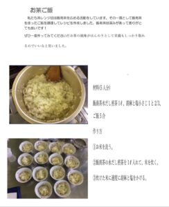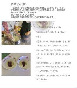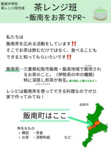 ホーム > 学校活動の様子 あしやまタイム 飯南茶宣伝 by茶レンジ班(お茶班) 飯南の特産品であるお茶をPRしたいという思いから生徒が実際に調理、試食を行いました。 シェアする Twitter でシェア はてなブックマークに保存 LINE でシェア Facebook でシェア Pocket に保存 Feedly で購読 関連投稿 2022年度 / 学校活動の様子 道徳 学校活動の様子 学校活動の様子 文化祭に向けて 学校活動の様子 松阪地区総合体育大会(女子バレーボールの部) 学校活動の様子 給食最終日 2021年度 / 学校活動の様子 2年数学、1年理科 前の投稿 創作部・生徒会 次の投稿 飯南中学校文化祭のお知らせ