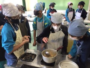 ホーム > 学校活動の様子 1年生調理実習 12月17日(水)家庭科の授業で調理実習をしました。 グループで協力して、準備から調理までスムーズに楽しく実習を進めることができました。 出来上がった豚汁を、みんなでおいしくいただきました。 シェアする Twitter でシェア はてなブックマークに保存 LINE でシェア Facebook でシェア Pocket に保存 Feedly で購読 関連投稿 2022年度 / 学校活動の様子 3年生 クラスの活動 学校活動の様子 生徒会専門委員会 2022年度 / 学校活動の様子 市長と語る会 学校活動の様子 授業のようす 学校活動の様子 後期生徒会役員選挙立会演説会 学校活動の様子 1年生図書館オリエンテーション 前の投稿 性の教育講演会(2年生)