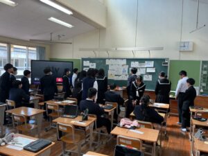 ホーム > 学校活動の様子 2年生学級活動の様子 クラス目標を決め、各班ごとに協力し掲示する目標を分担して作成しました。どのデザインにするのか、全員で選びました。どんなデザインが完成するか楽しみです。 学級目標は通信でお知らせします。 シェアする Twitter でシェア はてなブックマークに保存 LINE でシェア Facebook でシェア Pocket に保存 Feedly で購読 関連投稿 学校活動の様子 3年生 後期中間テスト 学校活動の様子 第53回三重県中学生バレーボール選手権大会 学校活動の様子 部活動の様子 学校活動の様子 金曜日の朝は「よむYOMUワークシート」(読解力向上プロジェクト事業) 2021年度 / 学校活動の様子 ちゃちゃもランチ 学校活動の様子 第1回飯南中学校区学校運営協議会 開催 前の投稿 3年生学活 次の投稿 3年生わくわくワーク
